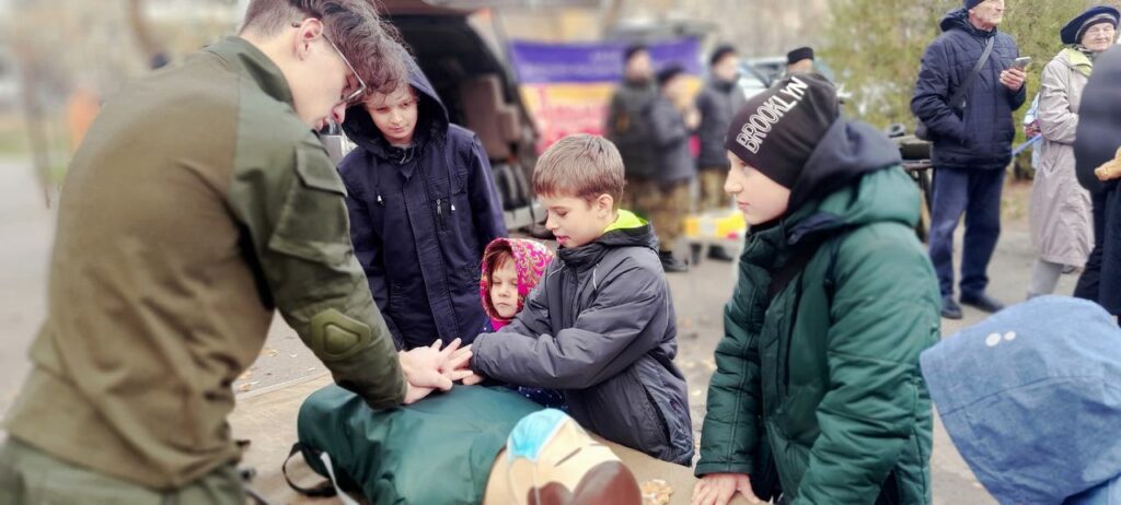 Затем Иветта, наша сестричка милосердия, поделилась помидорами и маскировочными сетями. Благодаря диакону Сергию все это было организованно доставлено на приход.